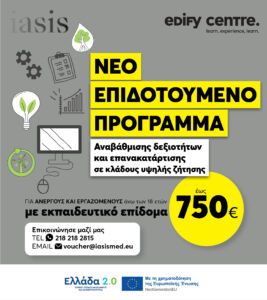 Προγράμματα αναβάθμισης δεξιοτήτων και επανακατάρτισης σε κλάδους υψηλής ζήτησης με έμφαση στις ψηφιακές & πράσινες και οικονομικές δεξιότητες, για Εργαζόμενους- Ανέργους.
